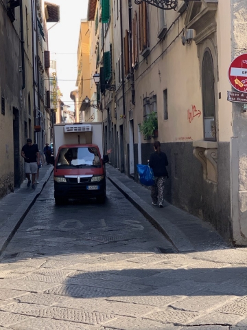 Thursday is supposed to be a rain day. I don’t mind the rain so much but the wet stone is slicky slicky.