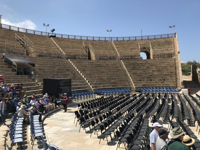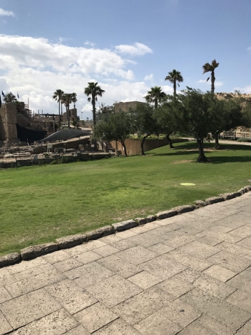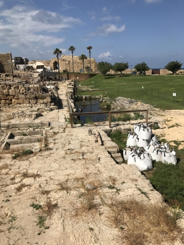 We collected all and headed for Caesarea about 1 hour and 1/4 away. Lunch first at a small mall in Or Akiva then at 1.30 we toured Caesarea. This is an outstanding Roman/Christian era Archaeological site. It is a good walk to go thru along the Mediterranean and thru the fortresses. As we left the site we passed by the ancient Roman aqueduct. It carried water to the city from the nearby Carmel Mountains.