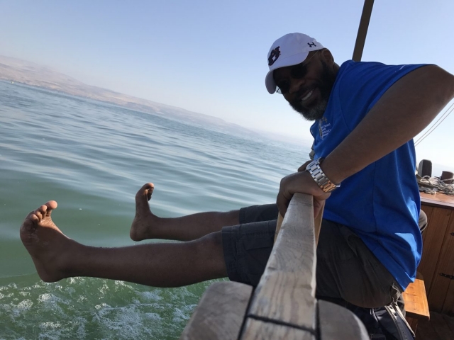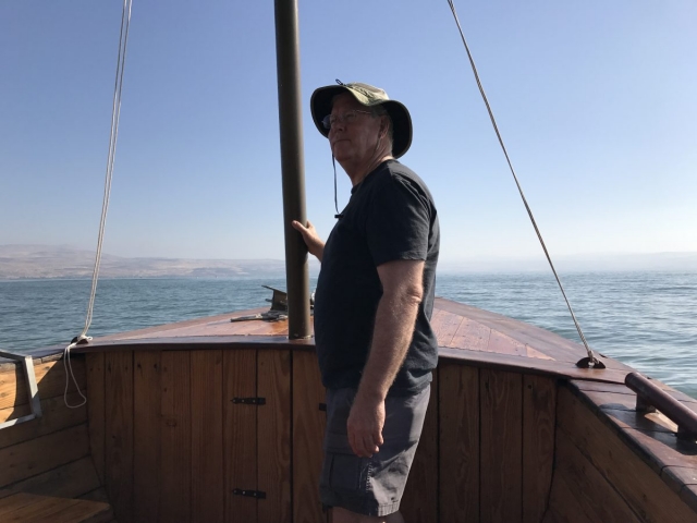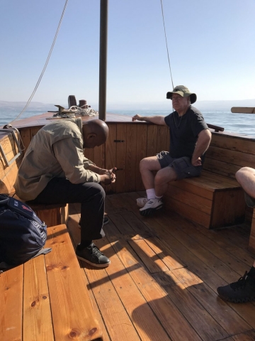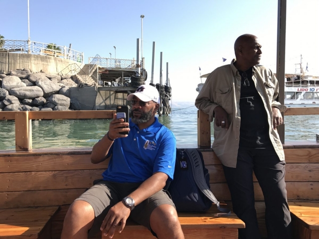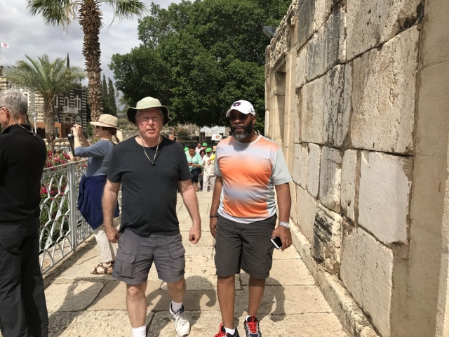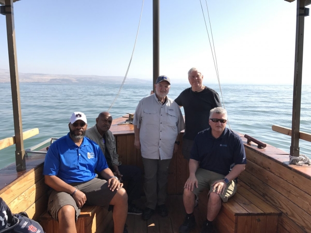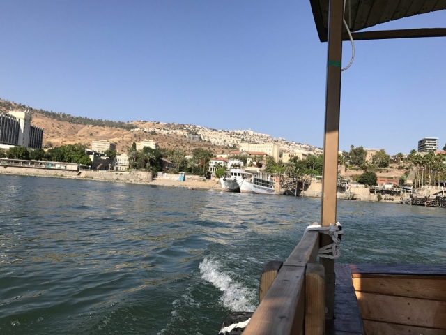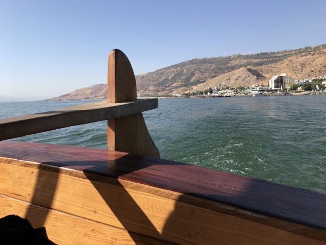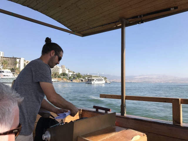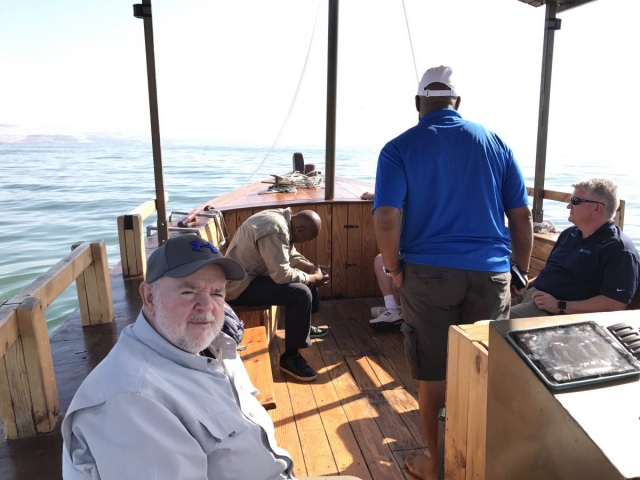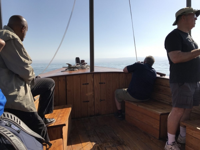 Today is Sunday. Dr Cornelius Tilton led our music and Dr Nelson Price gave our devotional. We arrived at the Galilee Boat ride at 8am and enjoyed a very calm and beautiful time on the Sea of Galilee sailing from downtown Tiberius to Nof Ginosar. We saw the ancient boat at Nof Ginosar and then loaded our bus for our journey across the Galilee to Megiddo. We ate lunch and toured the site then we drove to Jezreel and saw where Ahab had his Palace and somewhere nearby was Naboth’s Vineyard.