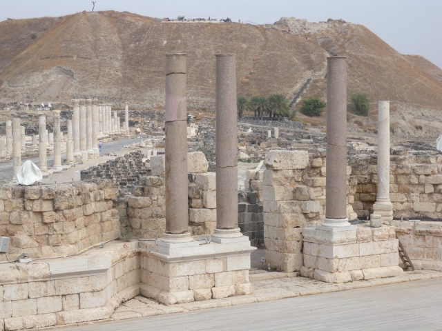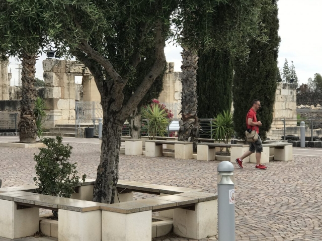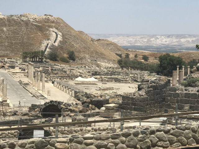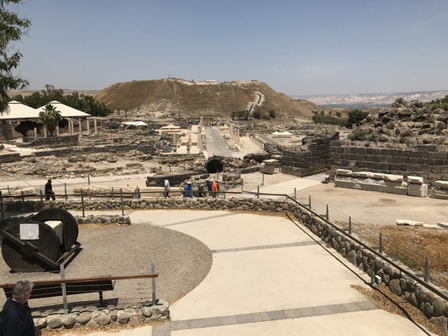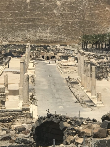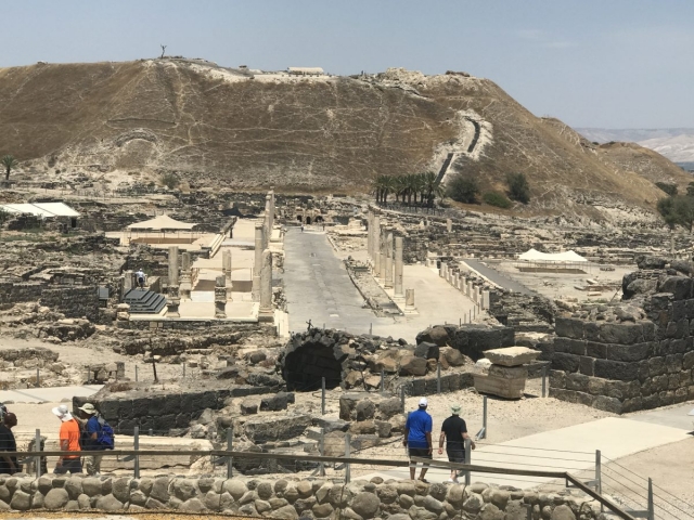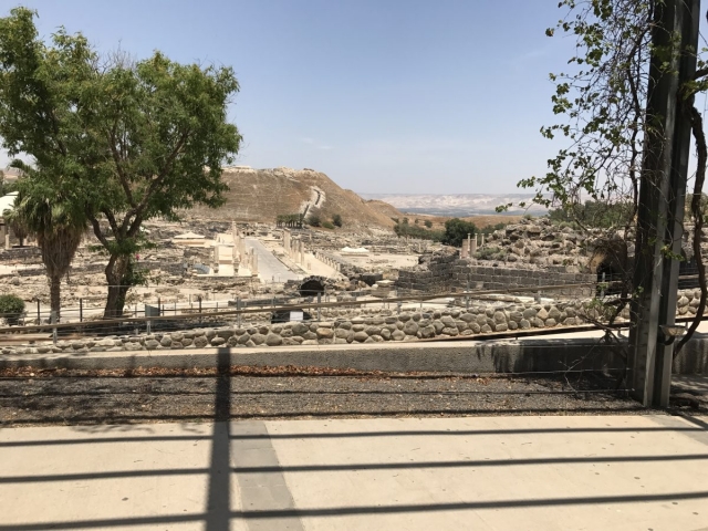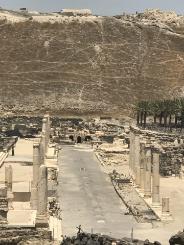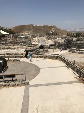 Next, we complete our drive across the Jezreel Valley and visit Beit Shean which was in Roman Times Scythopolis. Excellent site visit. About 32 of our 45 folks climbed to the top of the Tel where the Old Testament was located. No didn’t walk up with the young folks. Many steps to the top.