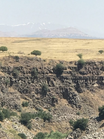 We drove up into the Golan to Tel Dan. We were so pressed for time that we only stopped at the Abraham Gate at Tel Dan and then drove across to Caesarea Philippi where Peter declared the divinity of Jesus. This is the site where the god Pan was worshipped (Banias-Arabs of the area used B for P). It is at the base of Mt Hermon and was a cultic worship center at the time of Jesus.