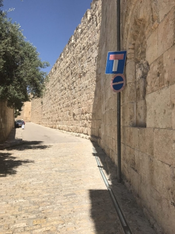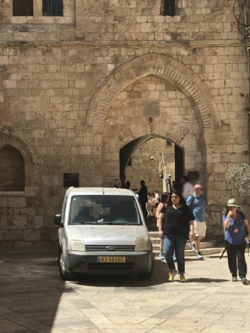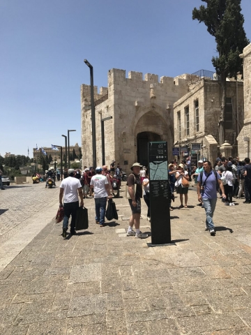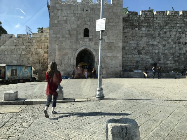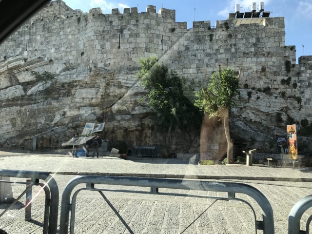 We circled the city in the bus. Jaffa Gate, New Gate, Damascus Gate, Lions Gate and got off the bus for the day at the Dung Gate.