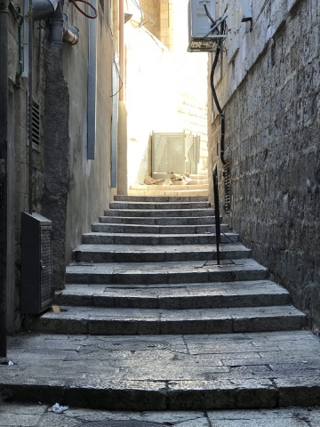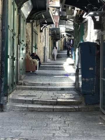 I love the Suk (market), the narrow streets overrun by people, the up and down of the streets and the chaotic noise and hum of Jerusalem.