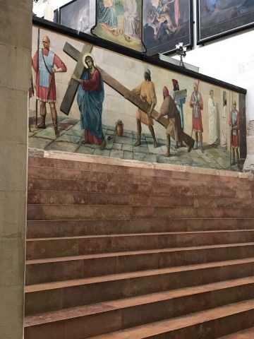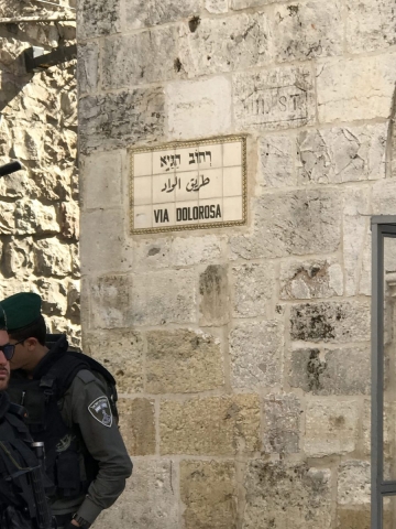 Then on to the Via Dolorosa and our stop at the Lithostratos-the pavement where the soldiers taunted and beat Jesus. Again a great devotional.