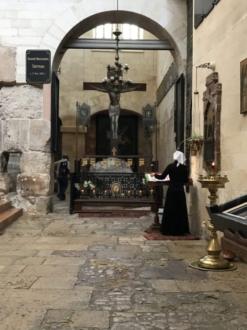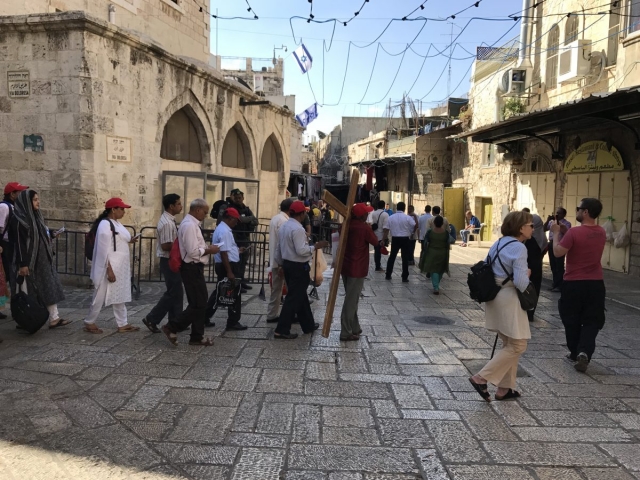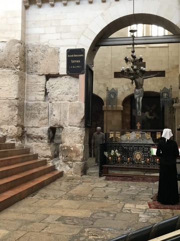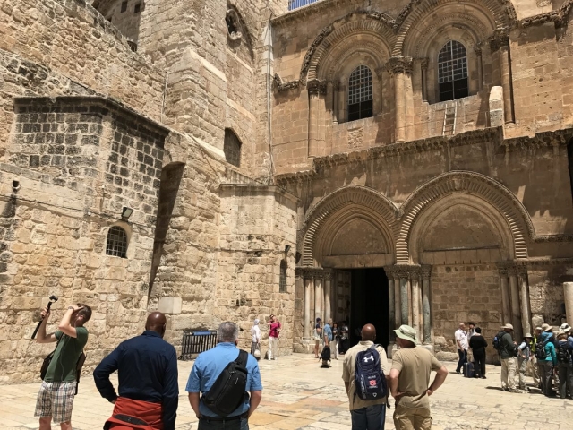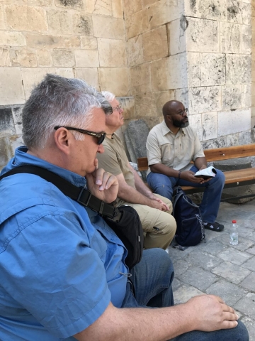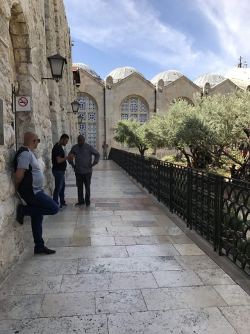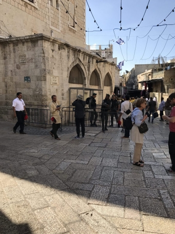 We moved on along the Via Dolorosa and interrupted our trip to the Holy Sepulcher to meet an appointment with Moshe at Shorashim. Very good time as Moshe shared the Jewish understanding of their faith and how it differs from ours. Moshe does a good job and doesn’t duck any questions. It certainly helps us to understand our differences but also doesn’t change the way we view our faith. Thanks to Moshe as he seeks to bring understanding to the marketplace. In our faith we are focused on Jesus, saved by His shed blood and eternally adopted into the family of God.