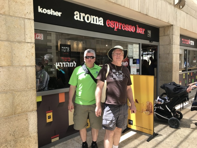 Last two stops were Tamar Bakfar near the Sea of Galilee and Aroma Tsamah at the junction. Tamar Bakfar is a dried fruit, nuts of all kinds, dates, herbal teas and a host of related items. Great little shop to wander thru. The Aroma where Manny is the GM is great. They got us in and out with our coffee.